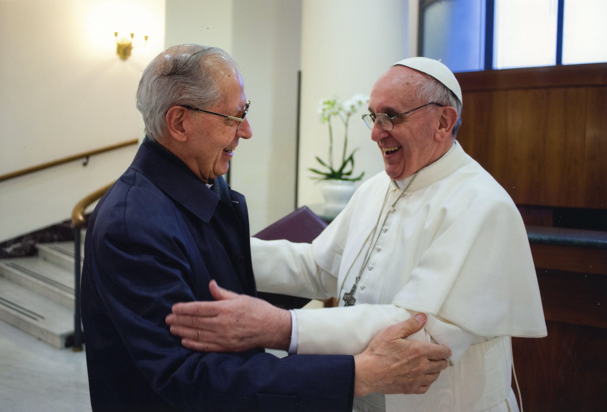 Deu-se um entendimento mútuo com paz e humor, falando do passado, presente e futuro. Deixei a Casa de Santa Marta persuadido de que o papa contará com muito gosto com a nossa colaboração ao serviço da vinha do Senhor. No fim, ele me ajudou a colocar o casaco e me acompanhou até a porta. Isso me proporcionou algumas quantas saudações dos guardas suíços que ali estavam. Novamente um abraço como se saúda e se recebe um amigo.