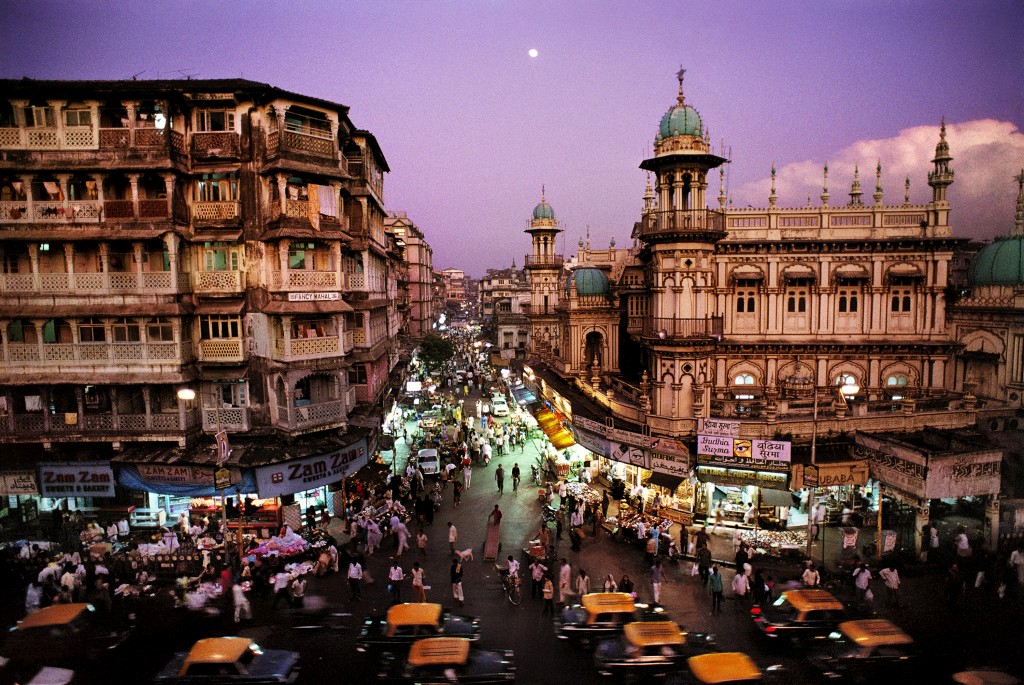 [aponta para a fotografia à entrada da galeria, que mostra táxis de tejadilho amarelo que se cruzam com transeuntes e vendedores de rua] Está a ver isto? Isto é Bombaim, anos 90.