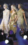 Para estender um pouco mais o gostinho de Londres, aí estão as top models britânicas Lily Cole (E), Kate Moss e Naomi Campbell (C) flutuando em um desfile no Estádio Olímpico durante a cerimônia de encerramento da Olimpíada