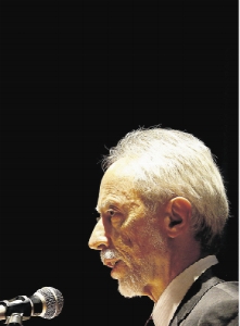 Foto  J.M. Coetzee durante sua conferência no Salão de Atos da UFRGS, em Porto Alegre